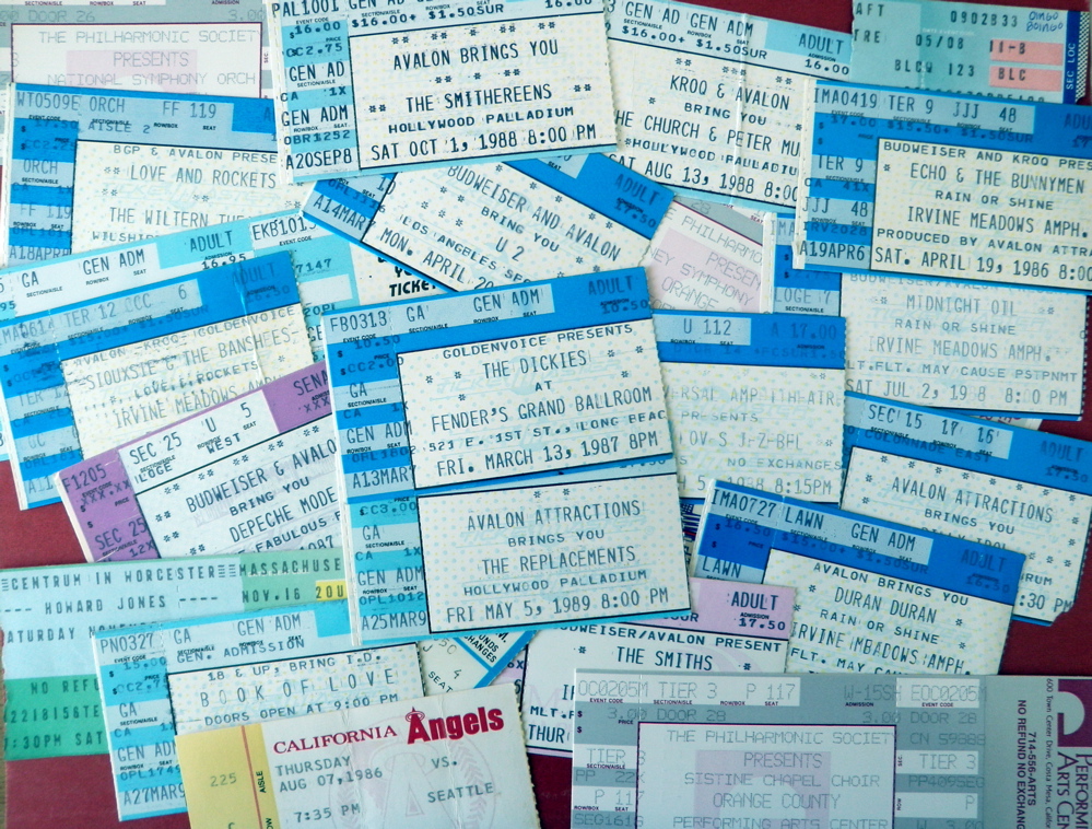Another myth turned to fact- my envelope full of concert tickets from my high school years. I have been looking for this envelope for about 20 years. I had just about resigned myself to the fact that it had been thrown away somewhere along the way, when I found it in the most unlikely of places- mixed in with college papers, in a box I’ve never looked twice at. When I was forced to face this box, I got nostalgic and instead of tossing the whole thing in the recycle bin, I started sorting. Retrieving papers I’d written in college, yes- on my typewriter, and getting rid of about 10 lbs. of stuff I’ll never look at or need again- there, in the mix… was my beloved envelope.
