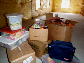 While things on the main level of the house are getting themselves sorted out and put away, this is what the basement and my sewing room look like. This is actually about 1/32 of the boxes and tubs of sewing and crafting goods I brought with me. I hope it feels like Christmas and not like yard sale leftovers when I get to open these boxes again in a few months. Onward, to the next chapter- finishing the basement.