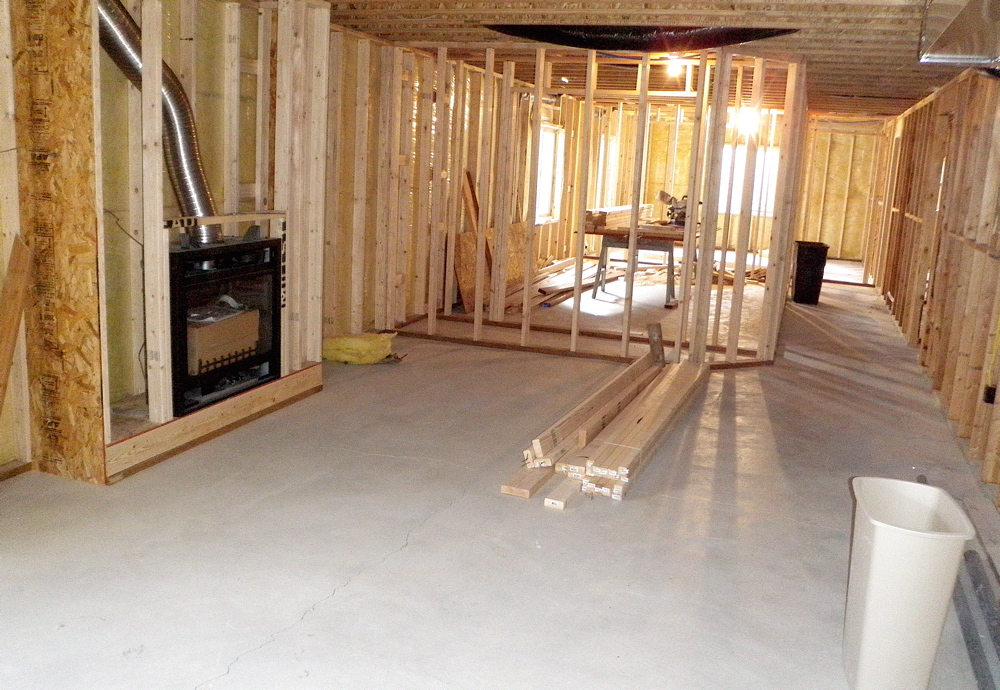 Here’s what we’ve accomplished in a week, thanks to some wonderful subcontractors (and a slow economy)- all the framing is in, ductwork for heating and the gas fireplace in the family room. There is a gas fireplace in the master bedroom upstairs, (along with an awesome bathroom, both major selling points) we decided it would be wise to cozy up the family room/commons room, share the love in the basement too.