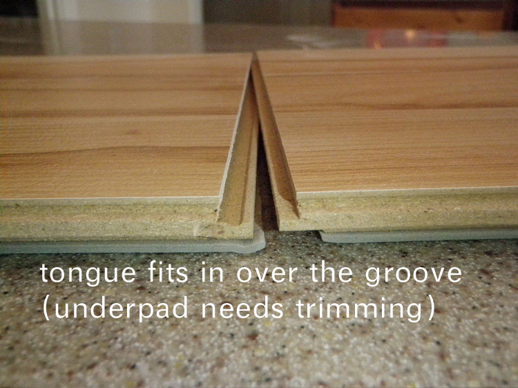 1. It may sound tedious (because it is) but make sure that your subfloor is level. Get out the grinder (if you are laying over concrete), the self leveling compound and an 8 ft. straight edge and bring the floor level- no more than 1/4″ to 1/2″ per 8 ft. span. A little prep work goes a long way, otherwise your joints could pop out at some point and make for a lot more work later, I don’t even want to think about trying to fix this sort of problem later.