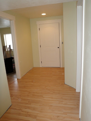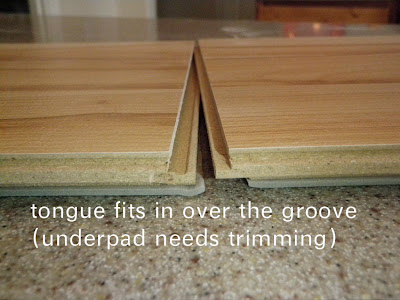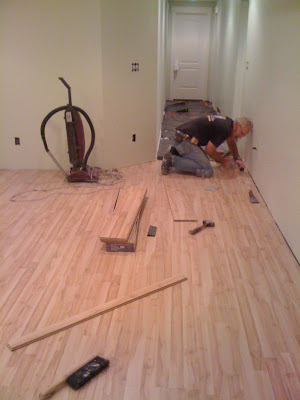 There is most definitely a learning curve when installing laminate floor. Luckily, my brother-in-law who has installed laminate in his own house helped me out throughout the project. Having at least two people to help really made it go faster. I meant to take a lot of pictures as we worked, but I never paused to get the camera, then it couldn’t be found when search for by the youth. So, the picture above is the only picture I have of the process.
