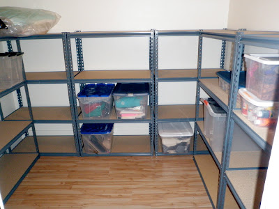 Ahh… the closet. This space should store everything crafty or sewing related. Perhaps more… but I’m not counting on it. Now, if I can just get up enough energy in my sore limbs and hands to carry in all the boxes from the garage and about 42 trips from the storage unit.