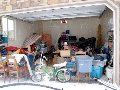 But then it snow about 2 feet…. and since I wasn’t going anywhere (here I am stuck at the bottom of the driveway) I decided the time had come to get the car inside for the winter and the mess organized. By the way, cat litter works wonders for getting 2 wheel drive cars (or Tahoe) unstuck. I think I’ll keep a box in the car, as well as a shovel and the chains.