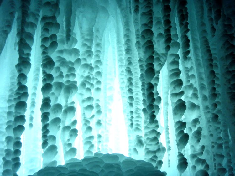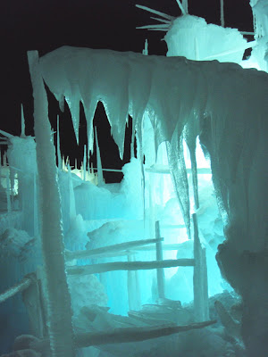 Depending on the air temperatures, the ice castles take on different aspects. Last night the ice was crisp and shiny thanks to the below zero temperatures this past week. Pictures on their blog from previous warmer weeks show drippy smooth surfaces.
