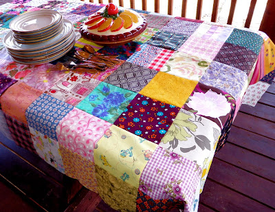I’ve been cutting up squares from piles and piles of scraps I’ve have piling up around the sewing room for years now,  and here is the (almost) finished tablecloth (I still need to put a back on this one) . I like the way they are turning out because as it turns out- I’ve got quite a plethora of vintage and colorful varieties of fabric scraps. These tablecloth/picnic blankets will be available at the Beehive Bazaar, May 5-7 in Provo and soon after on Etsy.