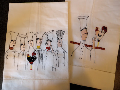 I just couldn’t pass up these boys, I found these two never used, but previously owned linen tea towels at the local thrift store this week. At first, I had no idea what I was going to do with them, using them as towels was out of the question, within a week they’d be ruined. Make them into oven mitts?… frame them and hang them on the kitchen wall?… no, they aren’t that funny… And then it hit me today- I’m thinkin’ a little something/something for an apron or two, perhaps on a pocket. Just you wait, I’ll see what I can come up with.