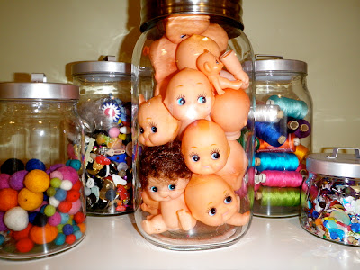 I just found this giant jar at a discount store in town…  finally I’ve found a perfect place for my naked baby collection, and yet another way to creep out everyone who comes into my lair.