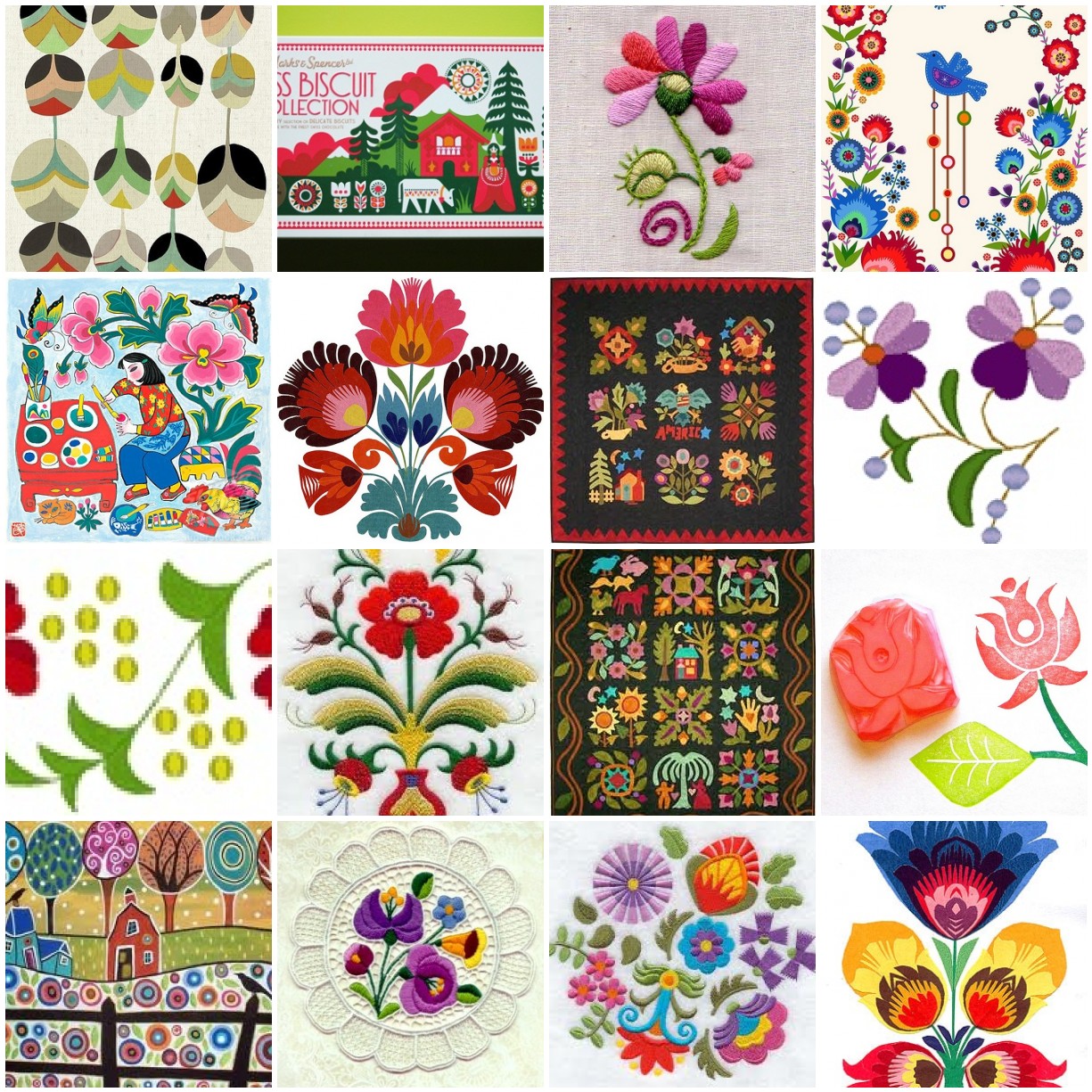 2. Swiss biscuit tin, google “swiss folk flowers” image search.