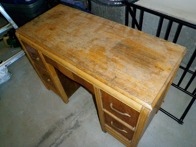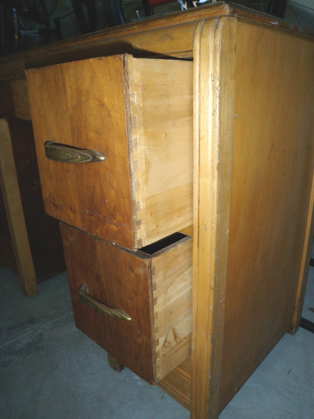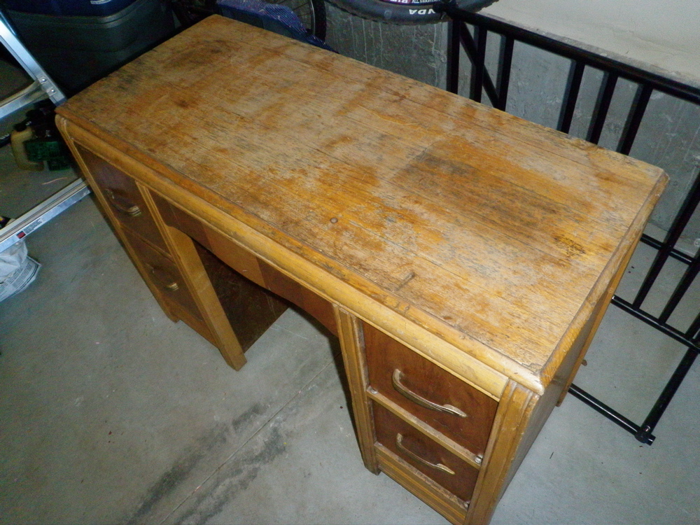 The dovetailed drawers cinched it for me- under all of it’s nicks and gouges, this $15 desk is a steal. When we barely got it stuffed it into the back of the Altima, I knew it was meant to be. Now I just need to decide how much work to put into it. Unfortunately, I don’t have time to refinish it. It will likely end up with a coat of paint. A bit of a shame to cover up all the woodwork, but shame on the person who dragged it outdoors and let it rot.