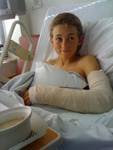 My dude F broke his arm at Camp Woodward in Pennsylvania yesterday. He’s been a ski camper all week- working on his ski jumping, flipping and grinding skills– loving every minute of it.  Apparently, he fell hard on a box jump and broke both bones just above the wrist- ouch. It was a bit of a compound fracture (the bone sticking out) so they whisked him into surgery to make the necessary repairs and add a little hardware, I think temporary though- on the hardware. Luckily his Dad was there with him and they fly back tomorrow.