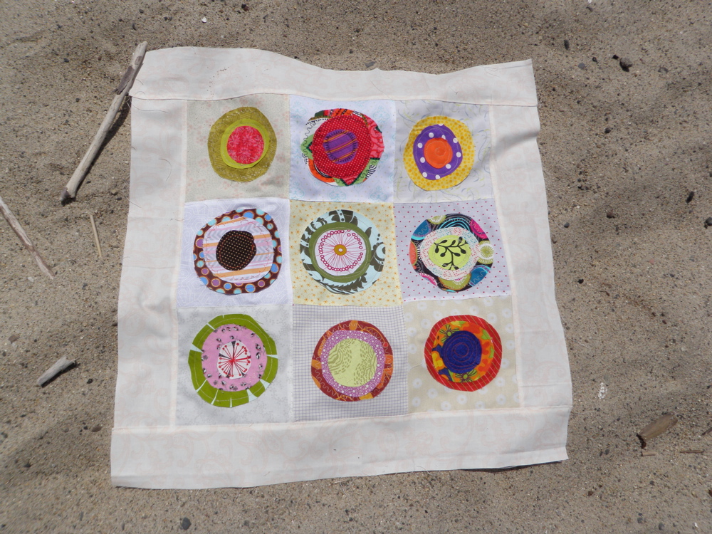 It seems like I’ve been cutting out circles of fabric all summer. Everywhere I go I bring a bag of scraps and some scissors, and here is why…
